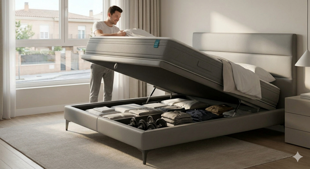 Si hay un producto que ha revolucionado el mobiliario en Madrid, es el canapé abatible. En una provincia donde el precio del metro cuadrado es elevado, aprovechar el espacio bajo la cama es una necesidad casi obligatoria.