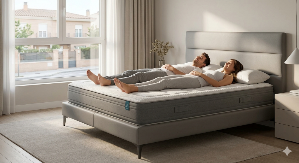 La viscoelástica es famosa por su capacidad para eliminar puntos de presión. Sin embargo, en Madrid debemos buscar viscoelásticas de célula abierta o con partículas de gel. Estas tecnologías permiten que el material respire y no genere esa sensación de «agobio térmico» que tenían los primeros modelos de este material. Son ideales para personas con dolores de espalda o problemas de circulación.